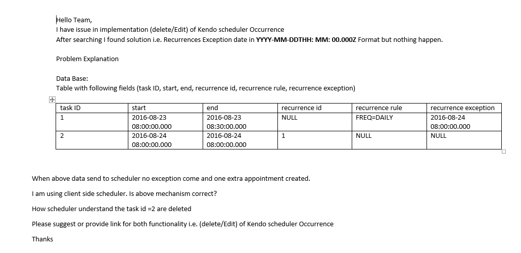 Table with following fields (task ID, start, end, recurrence id, recurrence rule, recurrence exception)