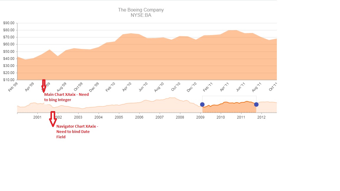 Our requirement is, we need to bind the Integer value in xAxis of Main chart and bind the Date value inxAxis of Navigator chart.