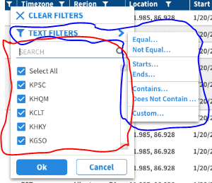 Also I am looking for any suggestion to show popup filter when custom is selected from Text Filter. shown in the picture (kendo-filter-custom-popup.png)
