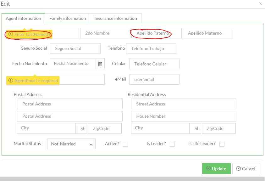 @(Html.Kendo().TextBox() .Name("LastName01") .HtmlAttributes(new { placeholder = "Apellido Paterno", required = "required", validationmessage = "Enter {0}", @class = "col-sm-2 form-control" }) )<span data-for='LastName01' class='k-invalid-msg'></span>