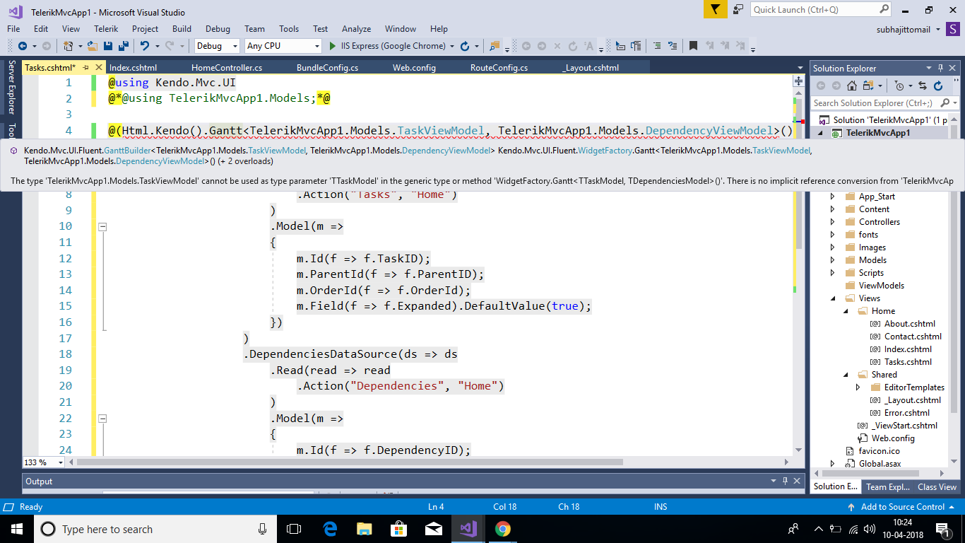 'System.Web.Mvc.HtmlHelper<dynamic>' does not contain a definition for 'Kendo' and no extension method 'Kendo' accepting a first argument of type 'System.Web.Mvc.HtmlHelper<dynamic>' could be found (are you missing a using directive or an assembly reference?)