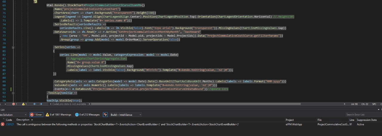 Kendo UI and .net Core error for StockChartBuilder build
