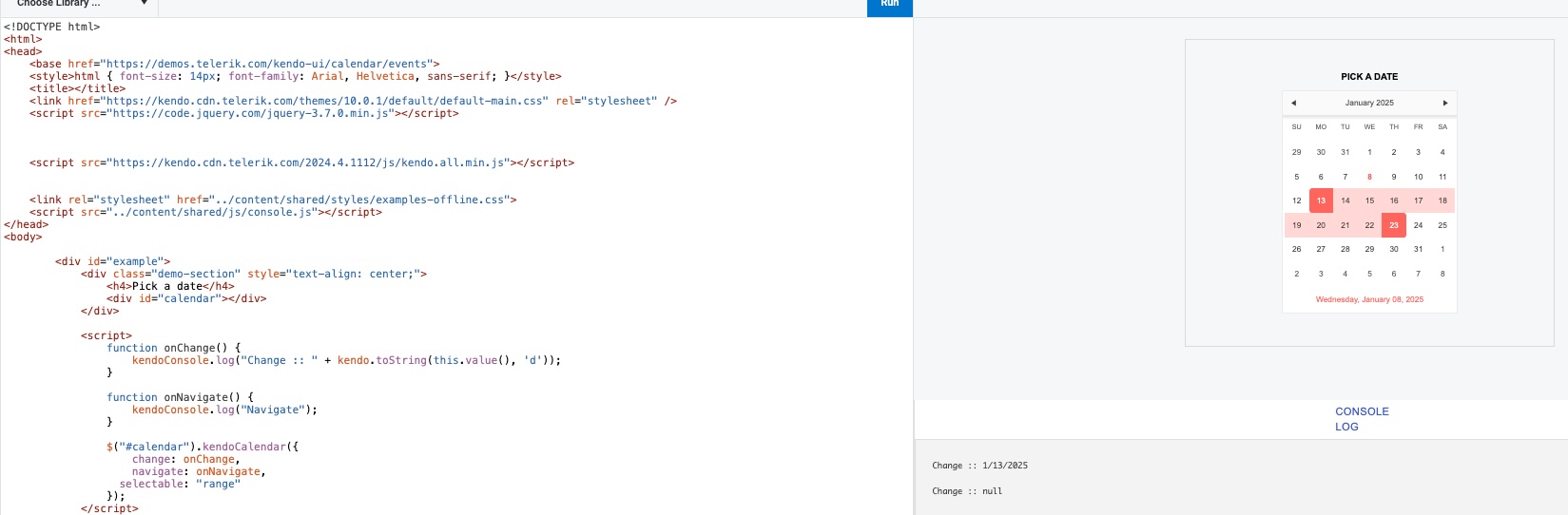 I am trying to set up calendar in my app using range selection mode.