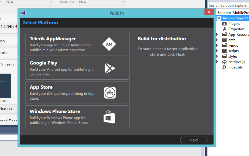 When I installed the Trial version of the Visual studio extension when i create a sample try to publish the app i can see android , Phone and Windows phone.However i cant see how to publish for blackberry and tablets? I have attached a screenshot , what i see when click on publish in visual studio.