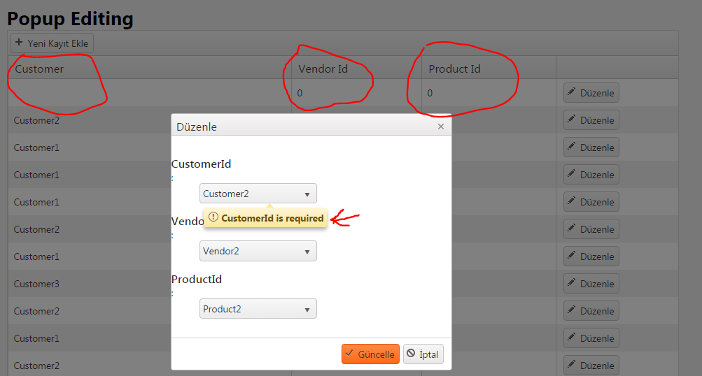 i have tried. UI items was set. But I have gotten validation error "Customer Id is required" and grid value have not set.