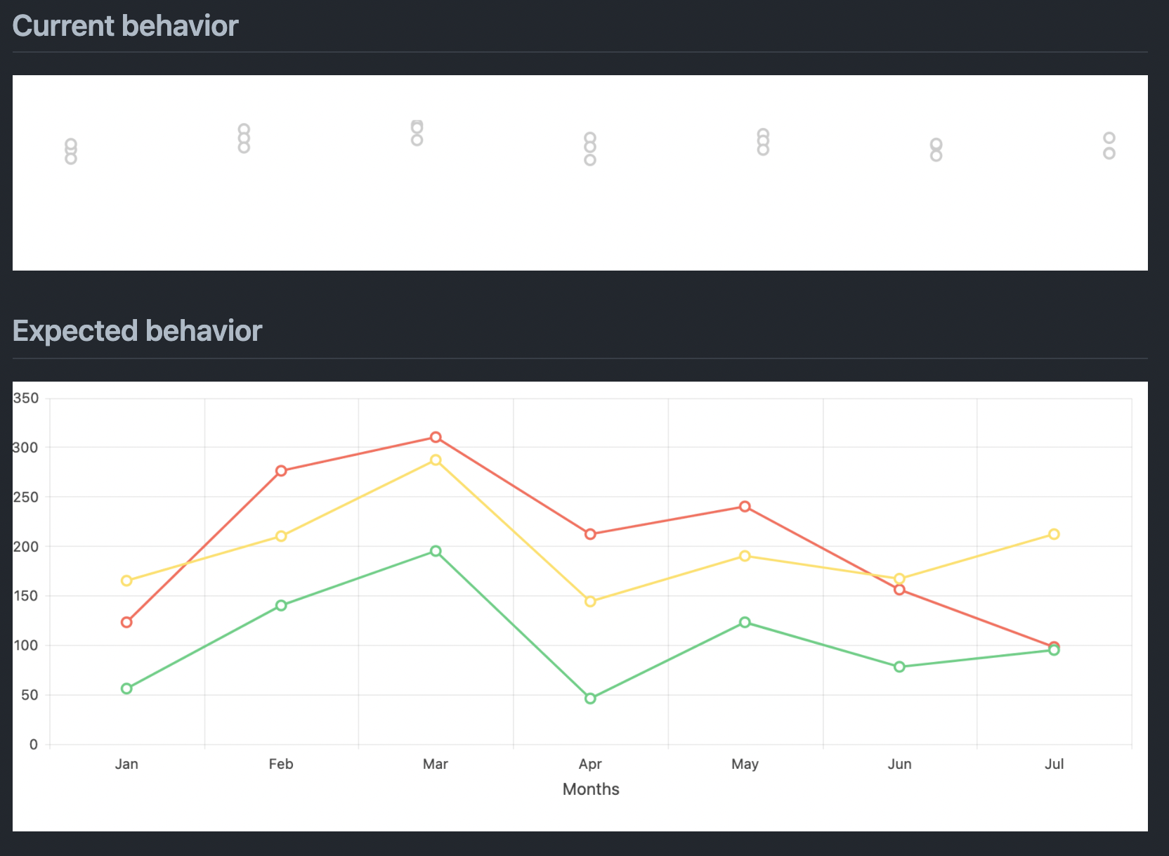 I have copied the exact example source code which works on stack blits but on my app the Chart is only rendering these white dots.