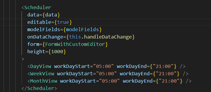 This is the KendoUI React Scheduler i am using on my code.