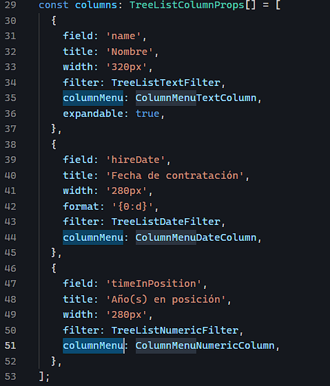 I have forked an example from the documentation: TreeList Globalization, and added columnMenu to it.