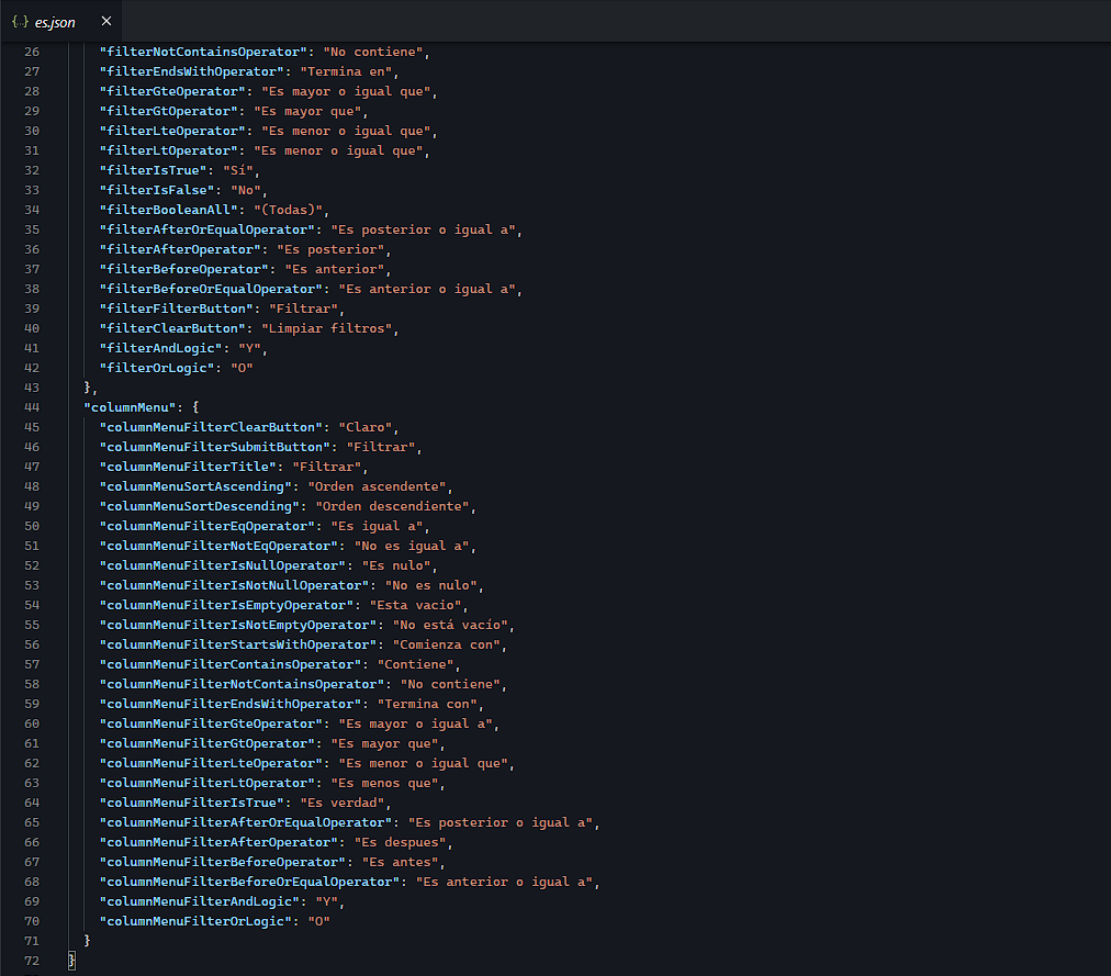 But despite the expectation that it will also be translated into Spanish, as well as filter, I see a standard text that cannot be replaced / translated by LocalizationProvider: