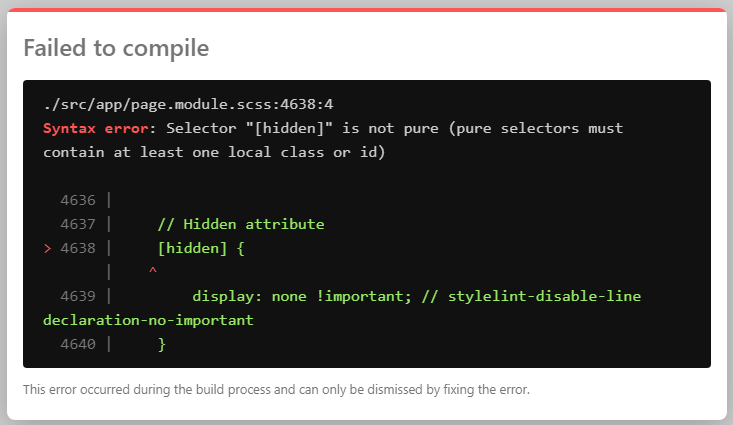Syntax error: Selector "[hidden]" is not pure (pure selectors must contain at least one local class or id)