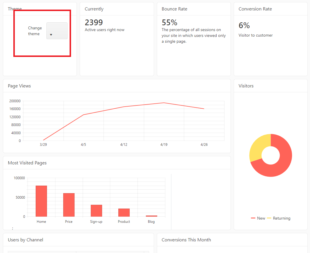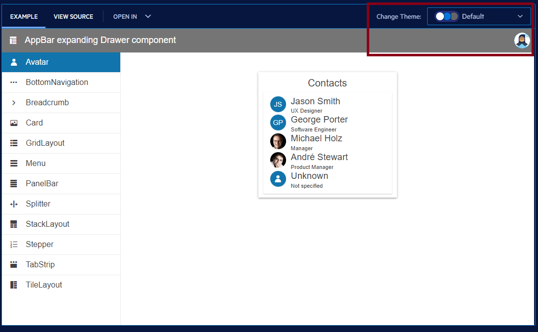 I'd like to have a functionality in the sample scripts to change theming using dropdown like this below: