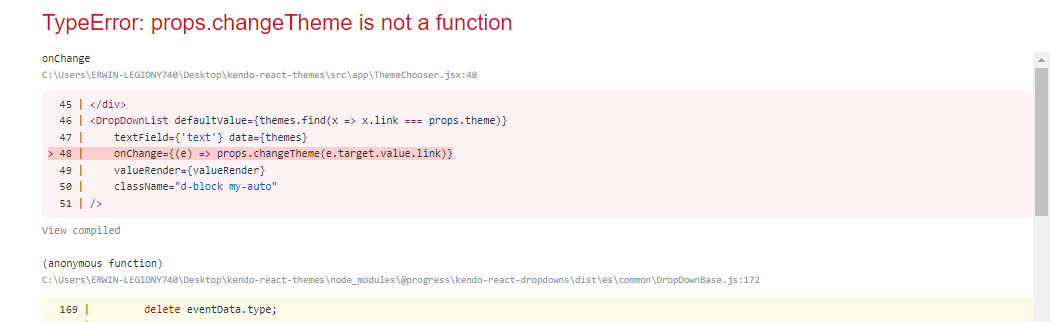 Additionally, and this may be because I'm behind by a few versions, React doesn't like the `props={....props}` on `line 23`. However, despite it not working on my end locally, the demo is working with this but still not working overall.