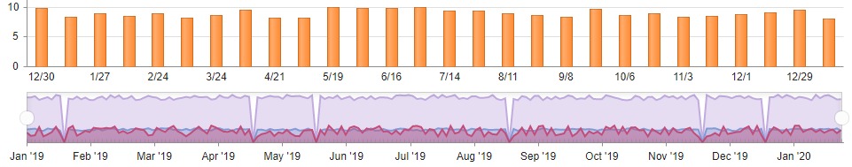 We are using Kendo stock chart to display 365 days of data, but I can see that the full one year(365 days) data is not being displayed on the category axis in the default/ zoomout mode. But when i zoom in I can see the bars for each day. How can i fix this ? Is this something related to sample rate ? I need to show full data on the category axis. Attaching images, first img is kendostock chart which won't display all data, second img is KendoChart which displays full set of data. But I need this work with KenoStock chart. Appreciate any help.