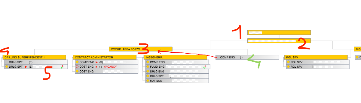 If this is correct, please provide more details how the node 5 is related to node 4, as the same type of relationship has to be set between node 3 and 4(green).
