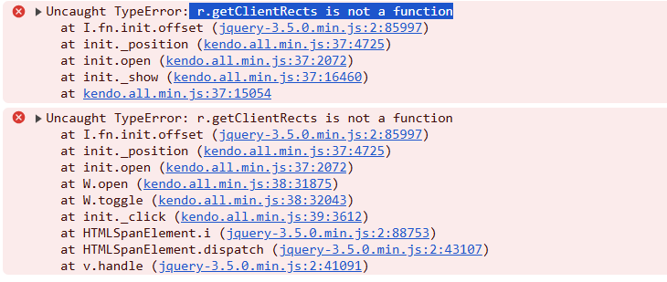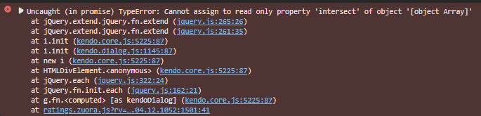 I am trying to use Kendo's Dialog to get user confirmation of an action. I am using Kendo v 2022 3.913 with jQuery 3.7.1, but I get an error when trying to initialize the component (see below). Has anyone experienced this? If so, how did you fix it? I think I have loaded all the dependencies.