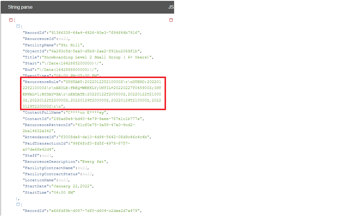I have such response from server. In recurrenceRule I have EXDATE (for example, 2022-01-22 9:00 PM), but this occurence still shows on the scheduler. Also, function isException returns recurrenceId (not boolean value) for all occurrences