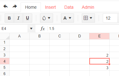 Is there a way to calculate/sum the display value instead of the keyed value on the spreadsheet control? In the example below, the actual value for the E3 and E4 is actually 1.5 as we do not allow decimal points, it is shown as 2 instead of 1.5. I will like the sum (cell E5) to be "4" instead of "3". Is it possible?