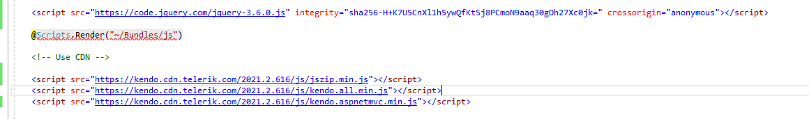 BTW, I'm using CDN to load the JQuery and Kendo js: