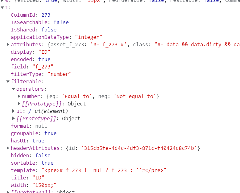 I am building kendo grid and set filtrable options.operators for number/integer column but the options are ignored and set to defaults, however same options for string liters are respected. UI element set for the integer type is respected as well.