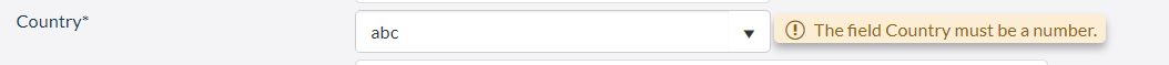 Validation should pass only if a country is selected from the combobox, entrering a numeric value or any other text which is not on the list should fail validation