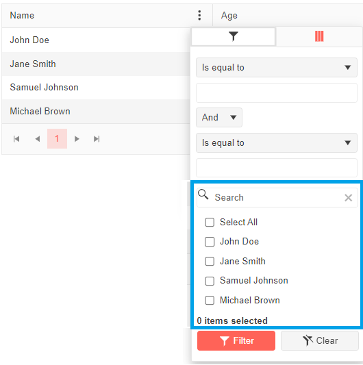 2. another section to allow user to search column data using operator (as shown here https://demos.telerik.com/kendo-ui/grid/filter-menu-customization )