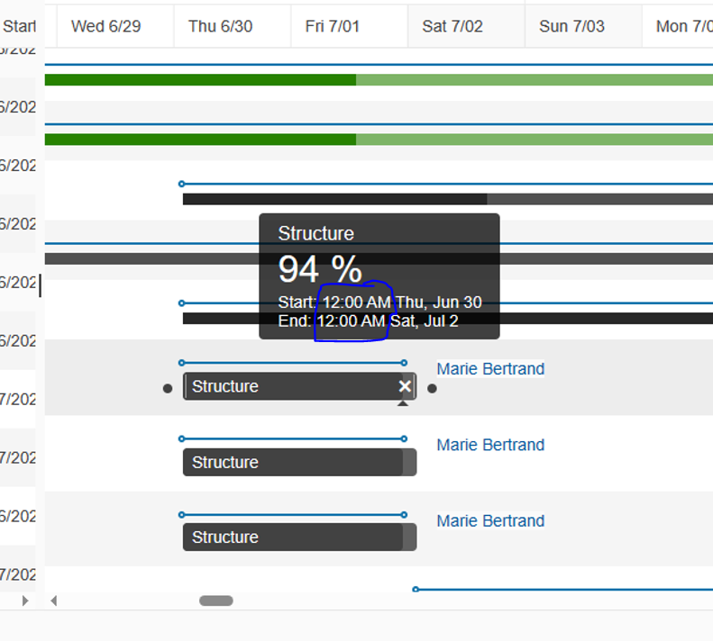 I want to hide TimeStamp from Planned Start, Planned End, Start, and End in Kendo UI for the jQuery Gantt Chart Tooltip.