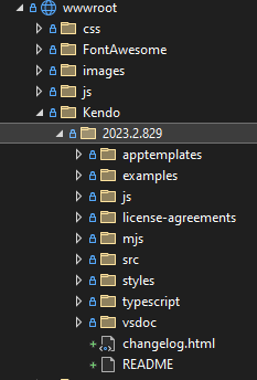 The Kendo stuff is stashed in the wwwroot (I did not design this structurer ... but I am stuck with it.):