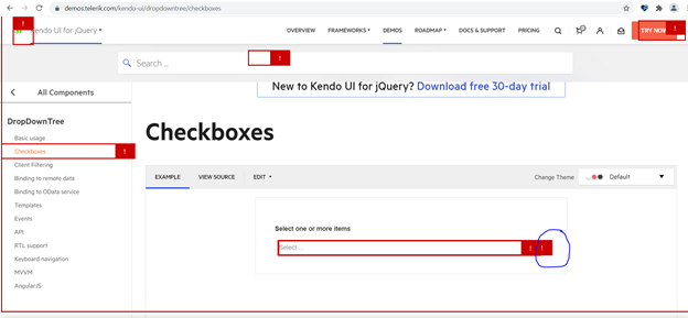 I have run the FastPass on the kendo control present at the below URL and found the a11y issues.