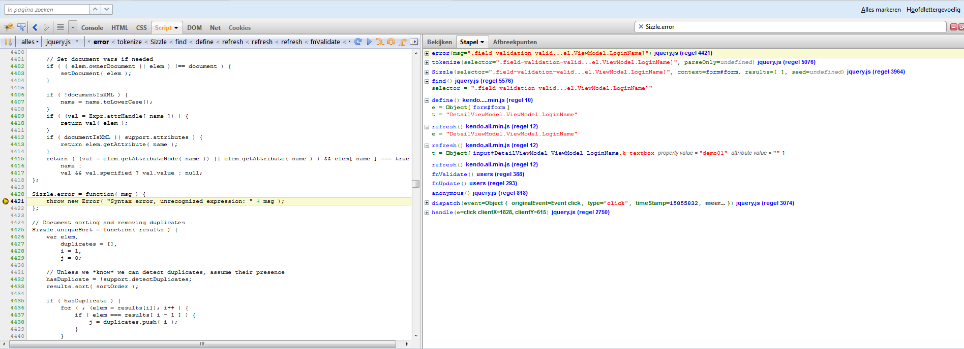as far as we see, finding (jquery .find() ) elements with a data- attribute causes a jquery Sizzle.error to be thrown.