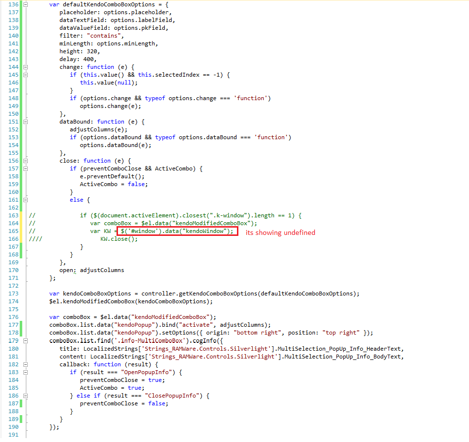 Help me in that how to close the kendow window. here I attacthed the code screenshot for your reference and I used bothe the combobx and the helptext as separate files.