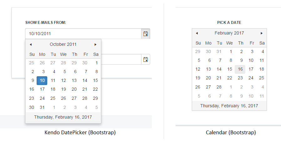 Hi, we're using the Bootstrap theme throughout our site and I've noticed that the KendoCalendar doesn't seem to have consistent bootstrap styling?