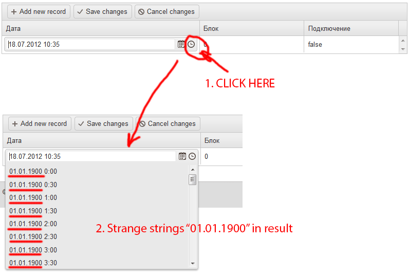 When i'm using kendoDateTimePicker widget as editor in kendoGrid, and click on clock icon, this widget show me string "01.01.1900" before time part in drop-down list (see attached picture).