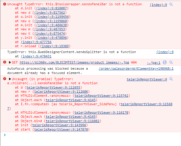 telerikReportViewer:9Uncaught (in promise) TypeError: e.children(...).kendoPanelBar is not a function