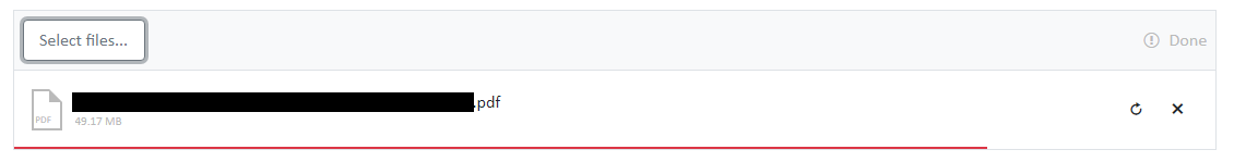 - is there a list of the possible UploadFileInfo.validationErrors anywhere? It would be nice to present some sort of error in the Upload component on FileReader.abort or error (see attached for a simulated error part way through the upload process, the progress bar is red and the 'Done' text has a warning icon but there is no validation message to indicate why)