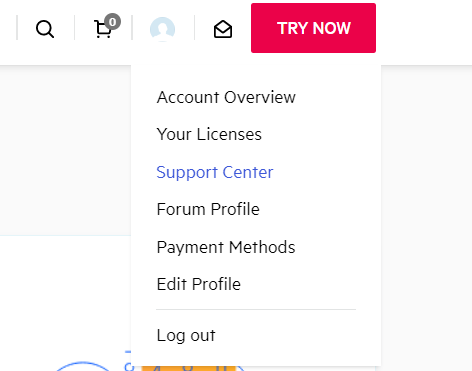 To do so log in to your Telerik Account and using the dropdown menu provided, click on "Support Center".