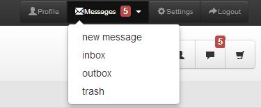 <div id="user-nav" class="navbar navbar-inverse"> <ul class="nav btn-group"> <li class="btn btn-inverse"><a title="" href="#"><i class="icon icon-user"></i><span class="text">Profile</span></a></li> <li class="btn btn-inverse dropdown" id="menu-messages"><a href="#" data-toggle="dropdown" data-target="#menu-messages" class="dropdown-toggle"><i class="icon icon-envelope"> </i><span class="text">Messages</span> <span class="label label-important">5</span> <b class="caret"></b></a> <ul class="dropdown-menu"> <li><a class="sAdd" title="" href="#">new message</a></li> <li><a class="sInbox" title="" href="#">inbox</a></li> <li><a class="sOutbox" title="" href="#">outbox</a></li> <li><a class="sTrash" title="" href="#">trash</a></li> </ul> </li> </ul> </div>