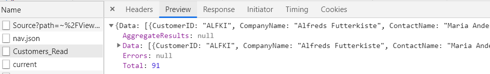 Regarding the Grid data not showing, it is hard to tell what might be causing this behavior without having the Grid declaration. Are there any JavaScript errors in the console? Is the data returned correctly for the controller (read method)? This can be found in the Network tab in DevTools: