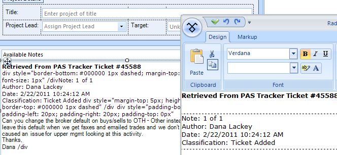 The radlabel does not display the HTML properly even when wrapped in "<HTML>". However, if I set the value of the radmarkupeditor to the HTML, it is displayed properly. In fact, when I hit APPLY, it actually converts the older tags to more compliant versions, ala SPAN tags with STYLE attributes.