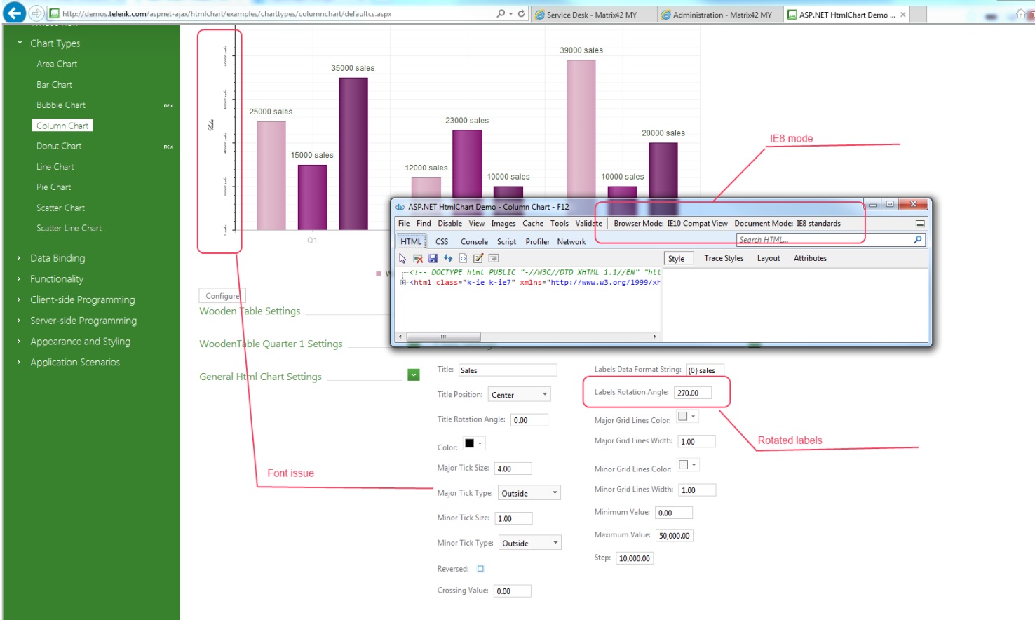 There is an issue when we're trying to build RadHtmlChart in IE8 having rotated labels (of xAxis or yAxix).