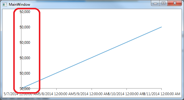 <Window x:Class="LabelTemplate_MultiBinding.MainWindow" xmlns:telerik="http://schemas.telerik.com/2008/xaml/presentation" xmlns:local="clr-namespace:LabelTemplate_MultiBinding" Title="MainWindow" Height="768" Width="1024"> <Grid> <telerik:RadCartesianChart x:Name="PropertyChart"> <telerik:RadCartesianChart.Resources> <local:ChartNumberFormatter x:Key="NumberFormatter"/> <DataTemplate x:Key="FormattedNumericAxisTemplate"> <!-- This uses the converter sending the desired value, and it works fine --> <!--<TextBlock Text="{Binding ., Converter={StaticResource NumberFormatter}}" />--> <!-- This uses the converter sending some value via binding using ElementName, and it works fine --> <!--<TextBlock Text="{Binding Path=DataContext.JustANumber, Converter={StaticResource NumberFormatter}, ElementName=PropertyChart}" />--> <!-- This uses the converter sending the same value as above via binding, but using RelativeSource instead, and it displays incorrectly! --> <TextBlock Text="{Binding Path=DataContext.JustANumber, Converter={StaticResource NumberFormatter}, RelativeSource={RelativeSource AncestorType={x:Type telerik:RadCartesianChart}}}" /> </DataTemplate> </telerik:RadCartesianChart.Resources> <telerik:RadCartesianChart.HorizontalAxis> <telerik:DateTimeCategoricalAxis/> </telerik:RadCartesianChart.HorizontalAxis> <telerik:RadCartesianChart.VerticalAxis> <telerik:LinearAxis LabelTemplate="{StaticResource FormattedNumericAxisTemplate}" /> </telerik:RadCartesianChart.VerticalAxis> <telerik:RadCartesianChart.Series> <telerik:LineSeries CategoryBinding="Date" ValueBinding="Value" ItemsSource="{Binding Path=Series1}"> </telerik:LineSeries> </telerik:RadCartesianChart.Series> </telerik:RadCartesianChart> </Grid></Window>The code-behind: