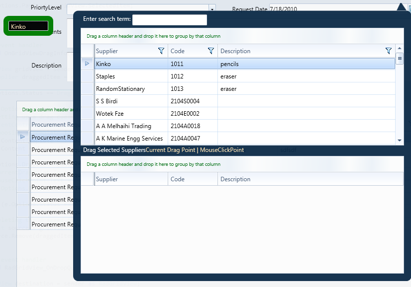 Thank you for the example. I was able to get it to work and provide demo to client. They are definitely going to move forward and I will be purchasing your tools. That being said, client is now considering silverlight instead of WPF. Can you please confirm that drag drop between two gridviews just like the example you provided in WPF will work in Silverlight. Thank you very much for your help.