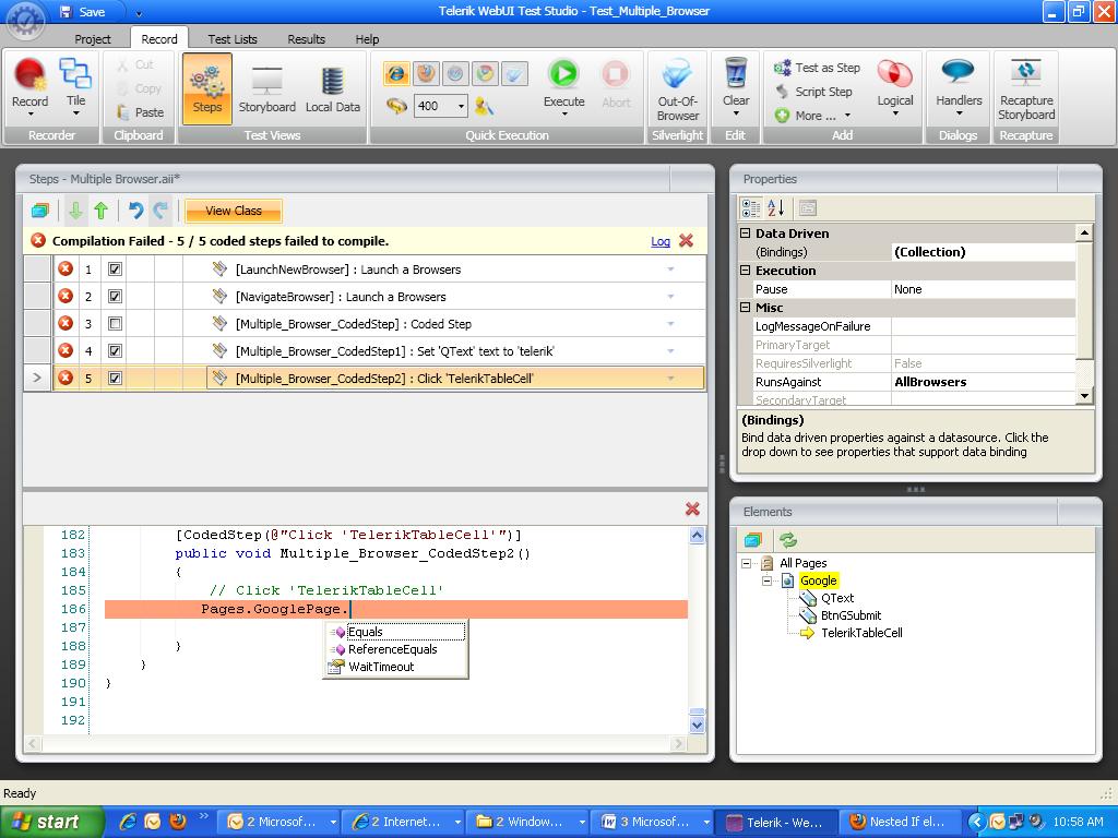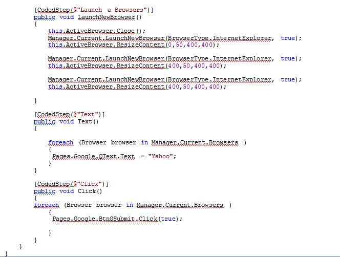 Am using QA version. Am trying to launch same test in multiple browser. Using C# code am launching multiple browser and navigating all browser to Google page. Its working fine for me up to this, now I want to type a text “Google” and will click on “Google Search” Button.