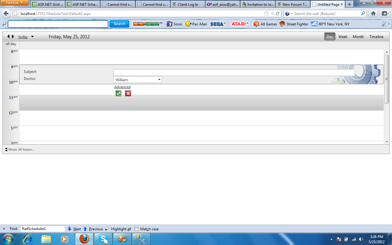 Issue-2) When I am clicking Advanced, It spans on all the schedular area. It should show in floatable popUp. And also my own drop-down of "Doctors" is disappeared. It should be there.