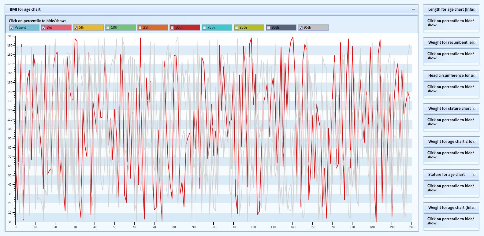 <telerik:RadChart DataContext="{Binding}" telerik:Theming.Theme="Office_Blue" HorizontalAlignment="Left" Loaded="RadChart1_Loaded" Name="radChart1" VerticalAlignment="Top" > <telerik:RadChart.DefaultView> <telerik:ChartDefaultView ChartLegendPosition="Top"> <!--<telerik:ChartDefaultView.ChartTitle> <telerik:ChartTitle>CDC growth chart</telerik:ChartTitle> </telerik:ChartDefaultView.ChartTitle>--> <telerik:ChartDefaultView.ChartLegend> <telerik:ChartLegend x:Name="PrimaryLegend" Header="Click on percentile to hide/show:" LegendItemMarkerShape="Square" LegendItemStyle="{StaticResource CustomLegendItemStyle}" /> </telerik:ChartDefaultView.ChartLegend> <telerik:ChartDefaultView.ChartArea > <telerik:ChartArea EnableAnimations="False" Padding="5,10,20,5" LabelFormatBehavior="None" LegendName="PrimaryLegend" FontSize="10" > <telerik:ChartArea.PaletteBrushes> <SolidColorBrush Color="Red" /> <SolidColorBrush Color="LightGray" /> <SolidColorBrush Color="LightGray" /> <SolidColorBrush Color="LightGray" /> <SolidColorBrush Color="LightGray" /> <SolidColorBrush Color="LightGray" /> <SolidColorBrush Color="LightGray" /> <SolidColorBrush Color="LightGray" /> <SolidColorBrush Color="LightGray" /> <SolidColorBrush Color="LightGray" /> <SolidColorBrush Color="LightGray" /> <SolidColorBrush Color="LightGray" /> <SolidColorBrush Color="LightGray" /> <SolidColorBrush Color="LightGray" /> <SolidColorBrush Color="LightGray" /> <SolidColorBrush Color="LightGray" /> </telerik:ChartArea.PaletteBrushes> <telerik:ChartArea.AxisY> <telerik:AxisY ExtendDirection="None" /> </telerik:ChartArea.AxisY> </telerik:ChartArea> </telerik:ChartDefaultView.ChartArea> </telerik:ChartDefaultView> </telerik:RadChart.DefaultView> <telerik:RadChart.SeriesMappings>.............................................................<telerik:RadChart>