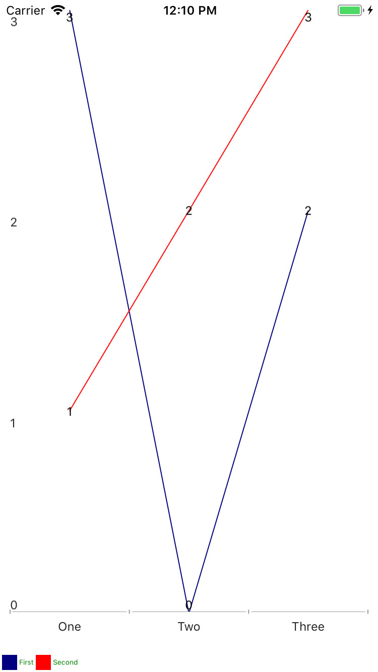 using System.Collections.ObjectModel;using Xamarin.Forms;using Xamarin.Forms.Xaml;namespace ChartLegendBug{ [XamlCompilation(XamlCompilationOptions.Compile)] public partial class MultiSeriesChart : ContentPage { public MultiSeriesChart() { InitializeComponent(); Legend.LegendItemIconSize = new Size(7, 7); } } public class CategoryData { public object Category { get; set; } public double Value { get; set; } } public class MultiSeriesViewModel { public MultiSeriesViewModel() { } public ObservableCollection<CategoryData> Series1Data { get; set; } = new ObservableCollection<CategoryData> { new CategoryData { Category = "One", Value = 3 }, new CategoryData { Category = "Two", Value = 0 }, new CategoryData { Category = "Three", Value = 2 } }; public ObservableCollection<CategoryData> Series2Data { get; set; } = new ObservableCollection<CategoryData> { new CategoryData { Category = "One", Value = 1 }, new CategoryData { Category = "Two", Value = 2 }, new CategoryData { Category = "Three", Value = 3 } }; }}