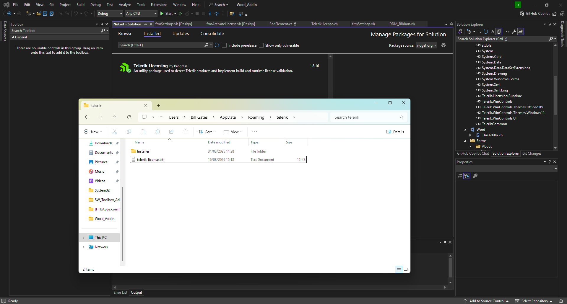 I have clicked on the help button and followed all the steps on the following web link (https://docs.telerik.com/devtools/winforms/licensing/license-key). I have tried the automatic and the manual installation methods; however, the message is still showing. I have confirmed that the telerik-license.txt file has been downloaded as well.