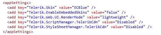 Hi everyone, I am trying to use the Lightweight render mode in UI for ASP.NET AJAX here with Custom Skin generated using the Telerik ThemeBuilder and include all the CSS to the page but it just won't work. I assigned the rendering mode, skin and use of embedded skins under the web.config for ease of changing it since assigning for each controls is hassle. I have already tried using RadFormDecorator using the settings I used in the web.config but found no luck.
