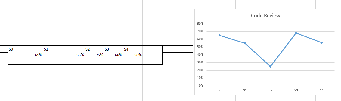 I need to create a line chart with markers which displays the percentage of code reviews completed in each sprint. The X axis denotes the sprints whereas the y axis denotes the percentage.