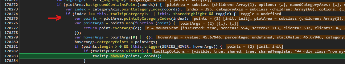 After the applied modifications the values shown in the tooltip were as you described. Check out the updated dojo below for reference: