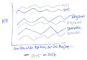 I am trying to produce a line chart with 6 lines on it - 3 lines that represent regional, domestic and international sales in year 2015 and 3 more lines that represent the same reg/dom/int sales data but in 2016 (basically a year over year chart where the x-axis shows the month names and each set of 3 line series represents the international, domestic and regional sales data in that particular year).